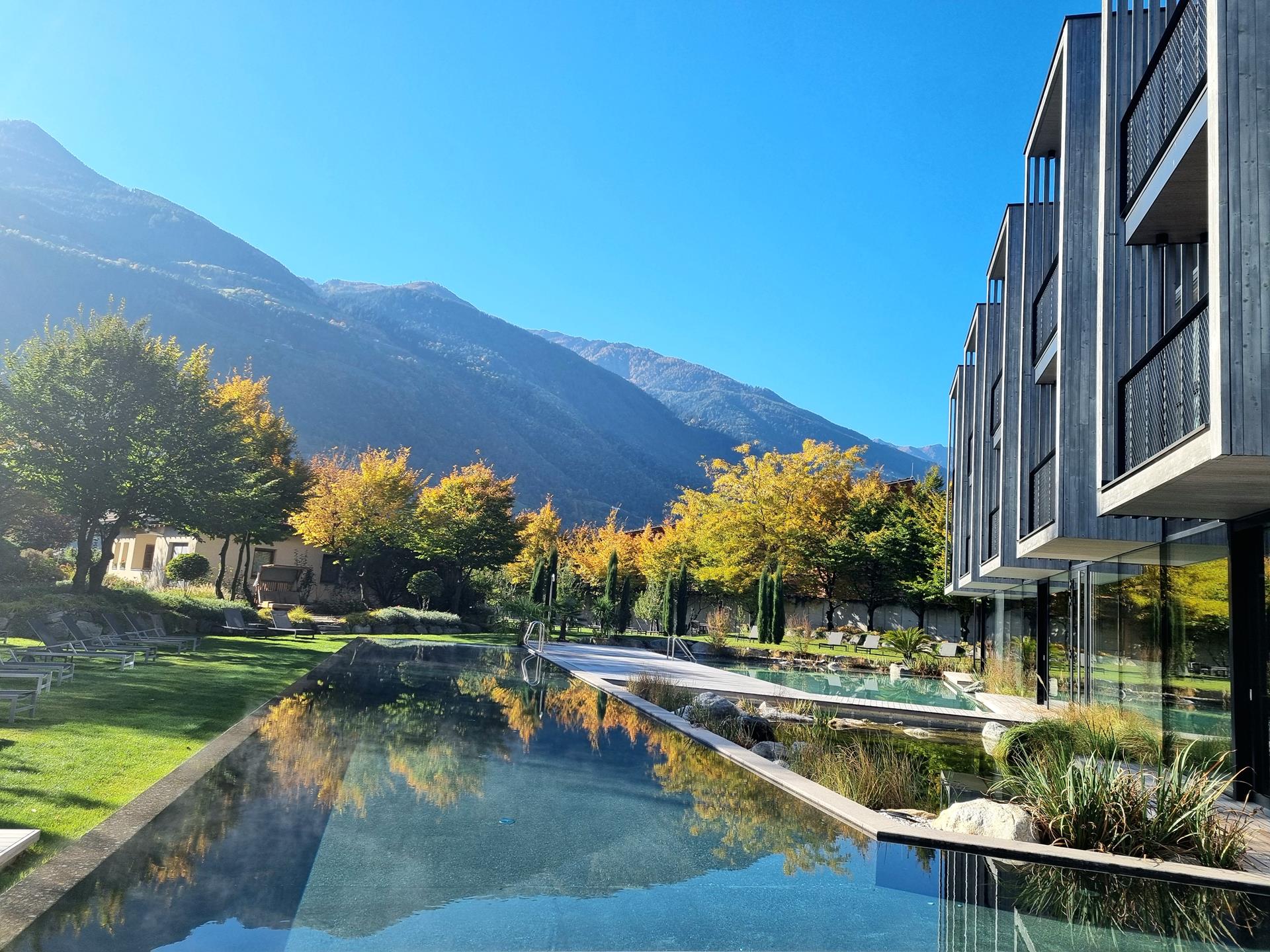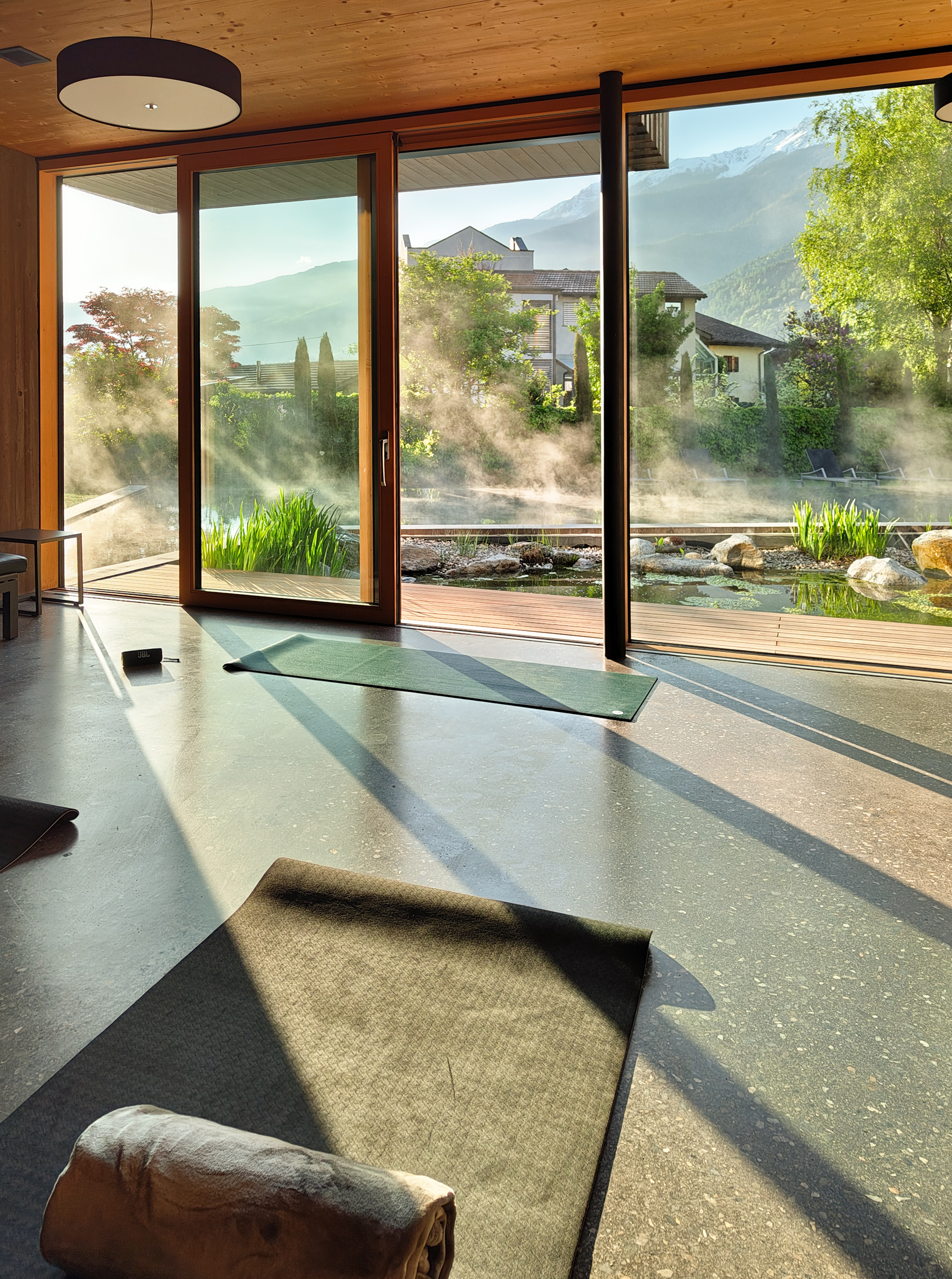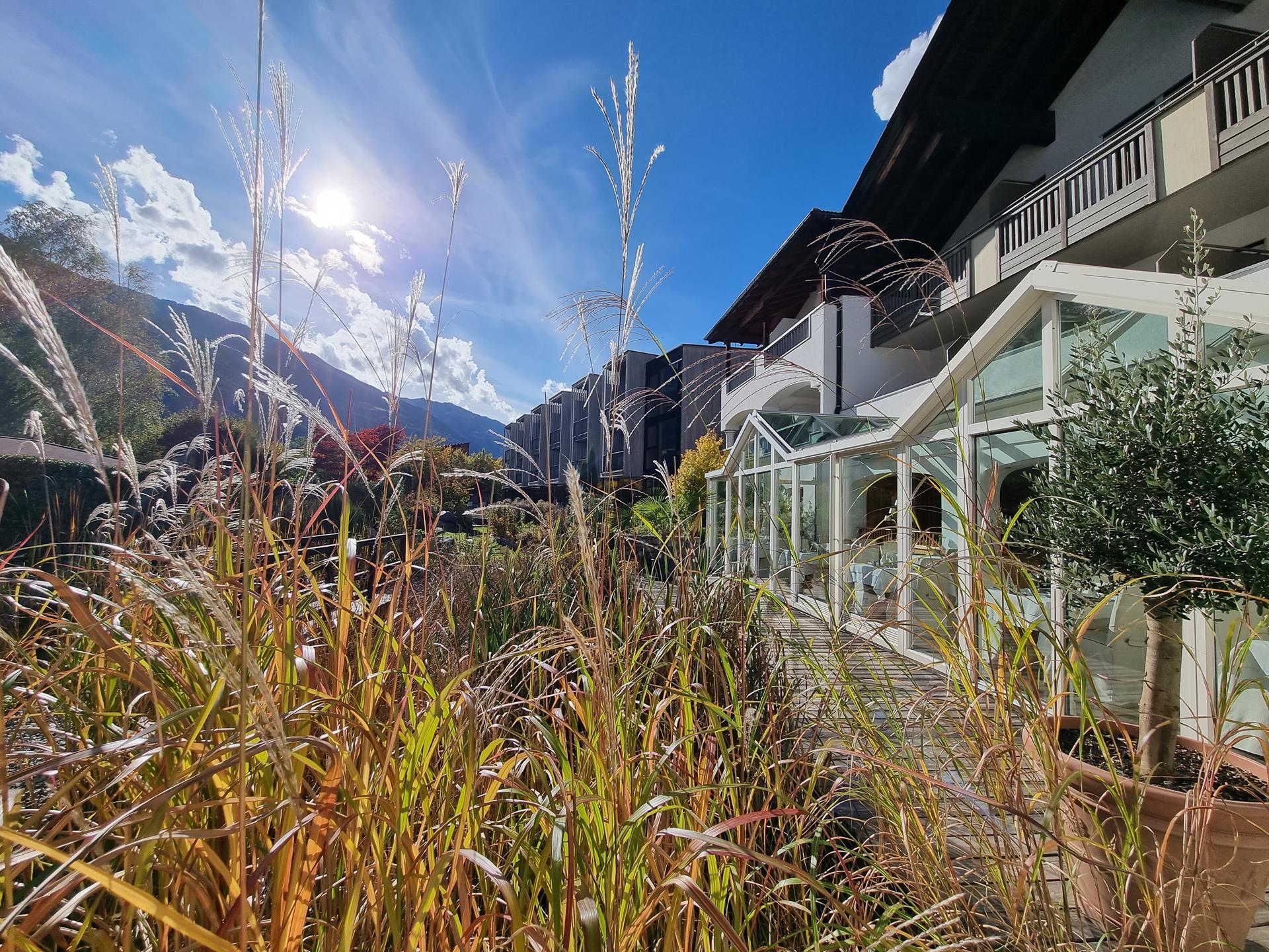 The bathtub at the façade with panoramic views over the garden and pools of the Juniorsuite Design