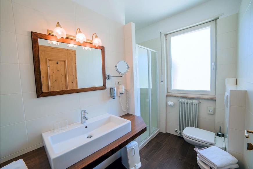 È arredata con bagno (doccia oppure vasca, WC, fon, alcuni con bidet), minibar, cassetta di sicurezza, telefono, TV satellitare, accappatoio, borsa Wellness, zaino e wifi. Le foto sono un esempio.