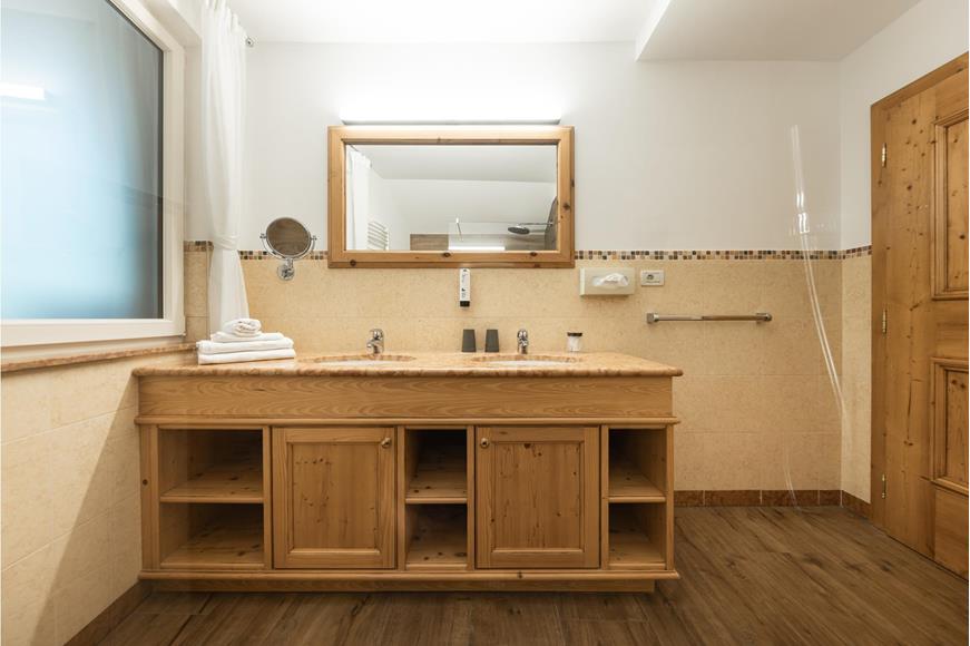 È arredata con stanza e soggiorno separati, balcone lato sud e nord, bagno (doccia, fon), WC separate, cabina armadio, minibar, cassetta di sicurezza, telefono, 2 TV satellitare, accappatoio, borsa Wellness, zaino e wifi.